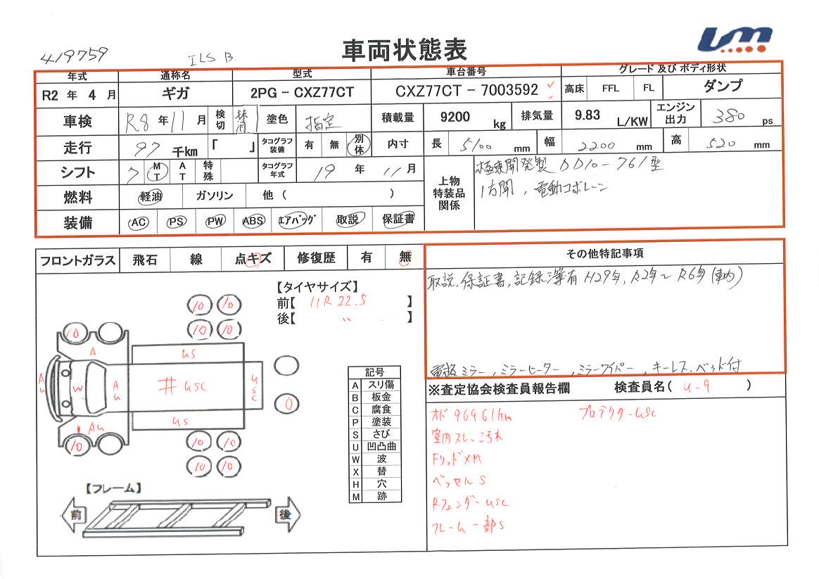 ギガ - R02年式 - ダンプ - 7MT - 97(千km)