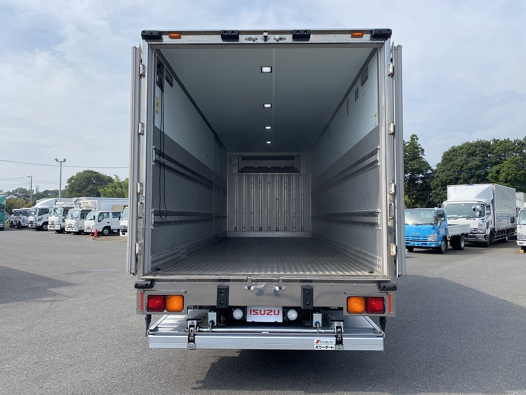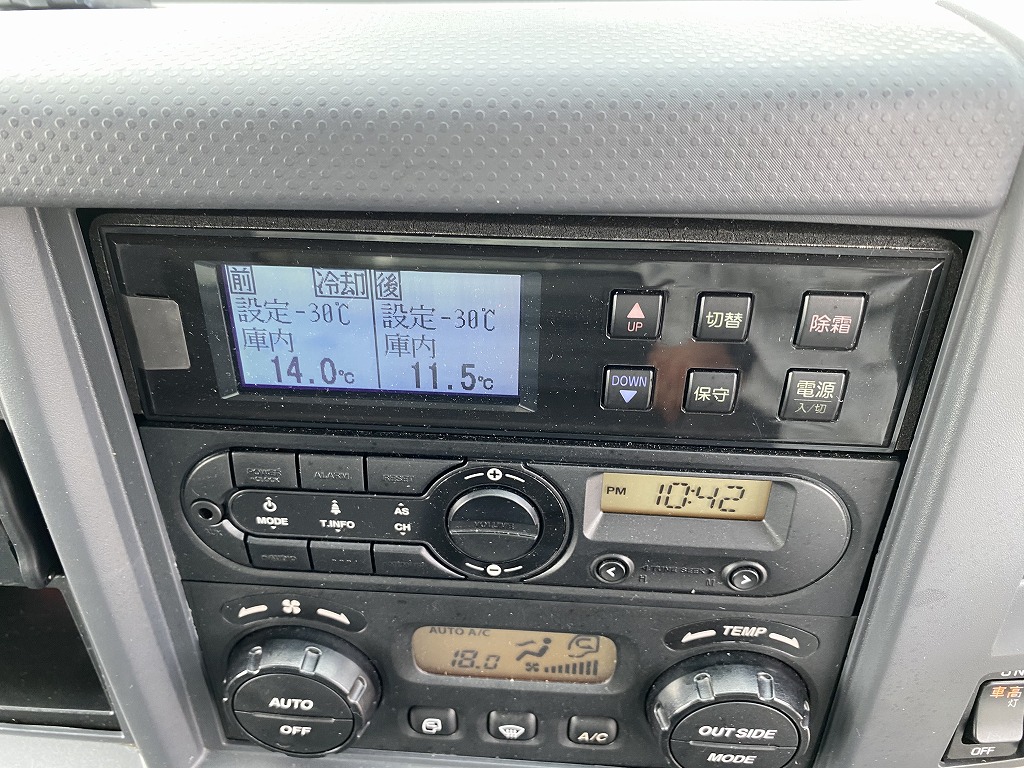 東プレ製XV82LSCRA0-U型 -30度設定 床縞銅板張 E/G始動時1時間で前28度~-2度 後28度~-1度まで確認済 極東開発製CG1002K-B3MRA2型格納パワーゲート(1000KG)スタンバイ付(コード車内)トランティック製V002H41-02 取説有(車内) ベッド付【タイヤサイズ225/80R17.5】