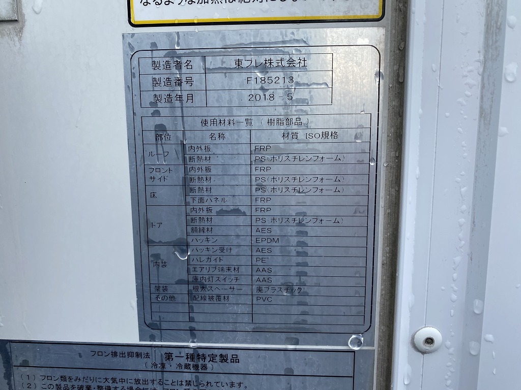東プレ製XV32LSC-P型 -30度設定 E/G始動時から2時間で前後36度~-11度まで確認済み サイドドア(助スライド式) スタンバイ有(車内)極東開発製CG1001H-B3MRA2型格納P/G(1000KG) 取説・保証書・記録簿R5年~R7年有(車内) シートコゲ跡【タイヤサイズ 195/85R16】