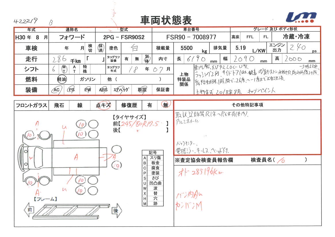 フォワード - H30年式 - 冷蔵冷凍車 - 6MT - 286(千km)