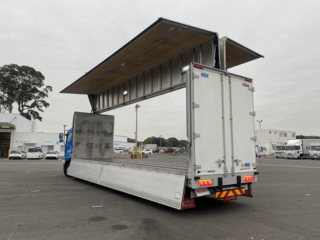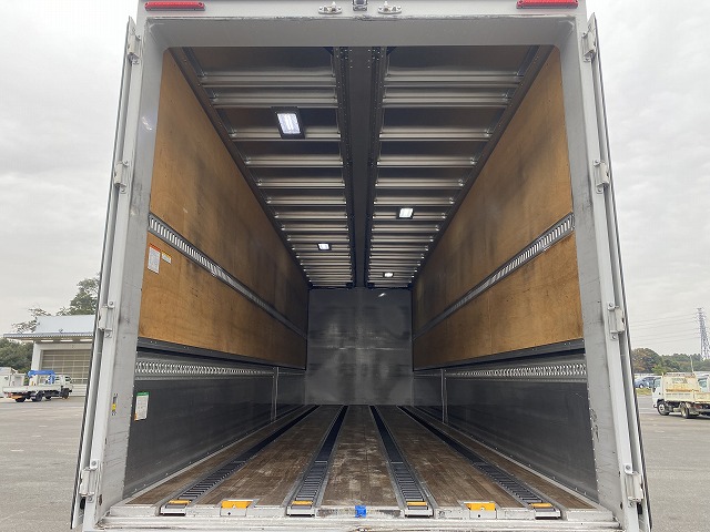 日本フルハーフ製DKL型 アルミウィング ラッシング2段 引出フック9対 センタービーム 床電動ローラー 取説・保証書・記録簿H30年~R6年有(車内) バックモニター オートクルーズ アイドリングストップクーラー 電格ミラー ミラーヒーター・ワイパー キーレス ベッド付【タイヤサイズ245/70R19.5】
