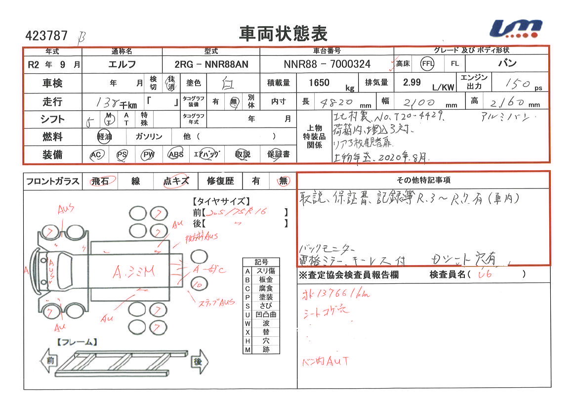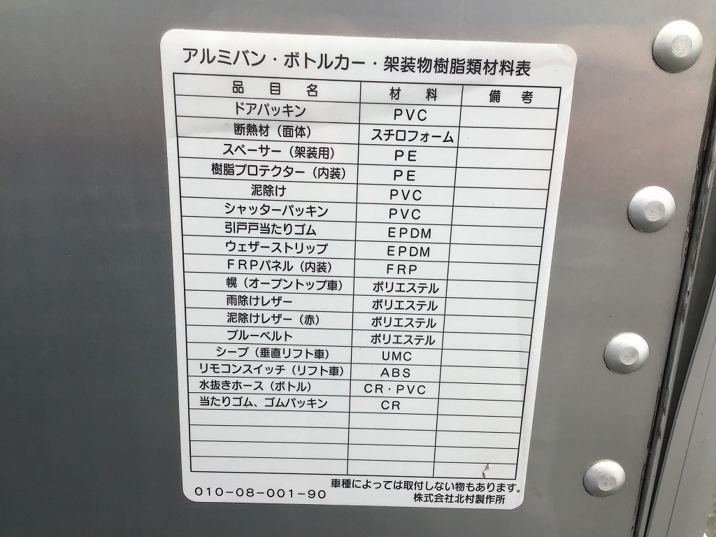 北村製 No.T20-4429 アルミバン 荷箱内埋込フック3対 リア三枚観音扉 上物年式2020年8月 取説 保証書 記録簿有R3年~R7年有(車内) バックモニター 電格ミラー キーレス付 Dシート穴有
