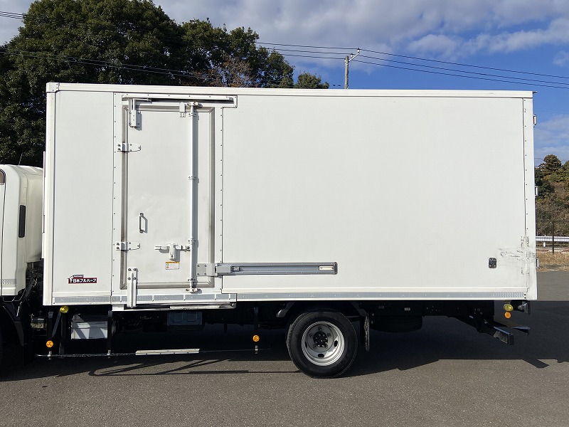 デンソー製CG921W型 中温設定 床ステンレス 移動式扉 水抜き穴前2ヶ所 3枚観音扉 サイドドア(助、スライド式)荷箱外側補修跡有 E/G始動後2時間で前後16℃~前2℃後-2℃まで確認済