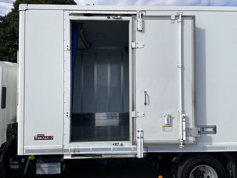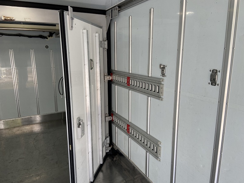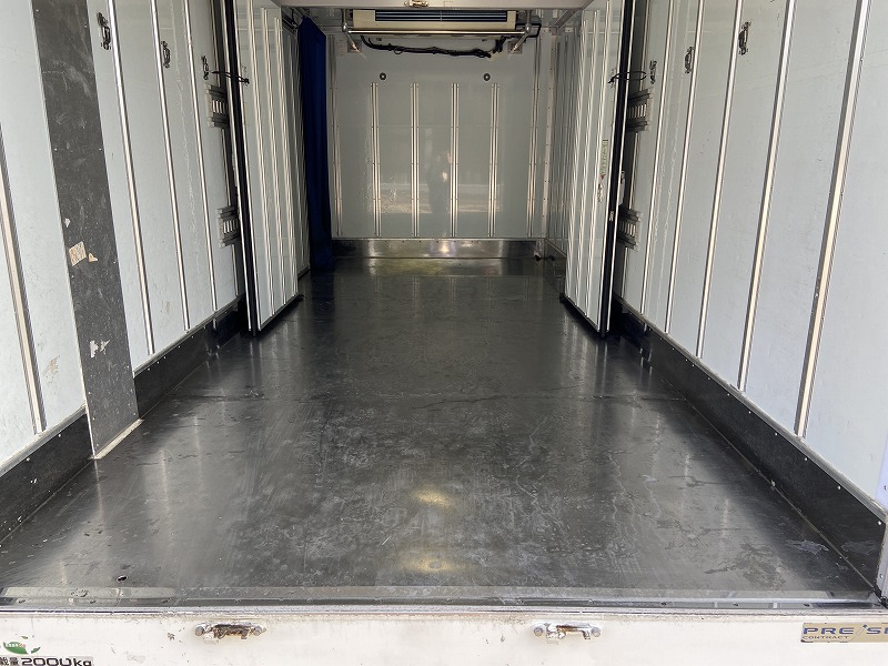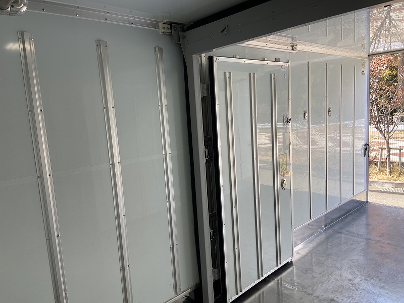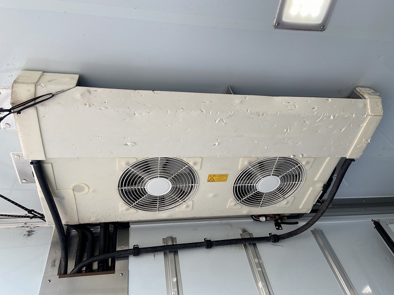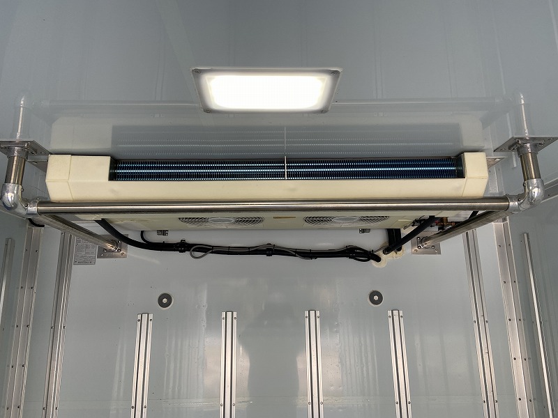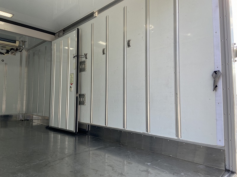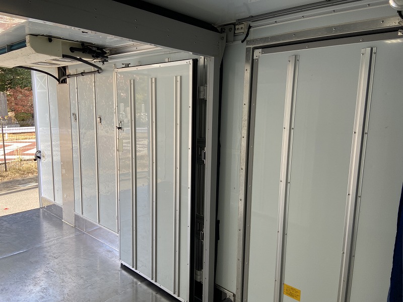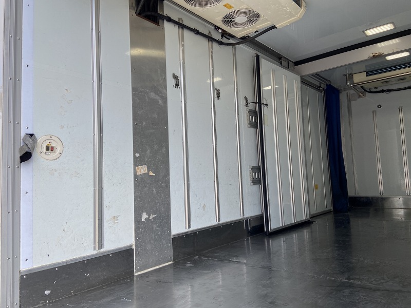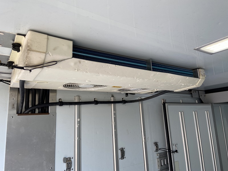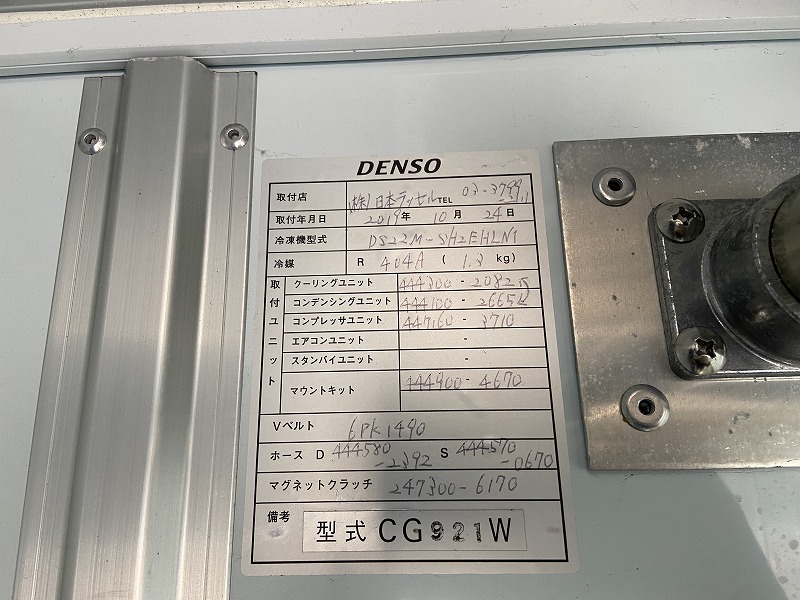 デンソー製CG921W型 中温設定 床ステンレス 移動式扉 水抜き穴前2ヶ所 3枚観音扉 サイドドア(助、スライド式)荷箱外側補修跡有 E/G始動後2時間で前後16℃~前2℃後-2℃まで確認済