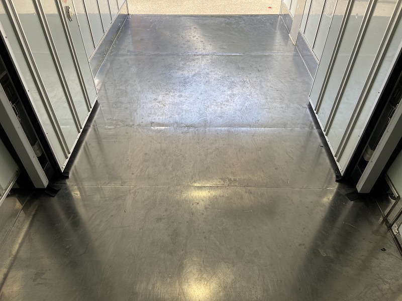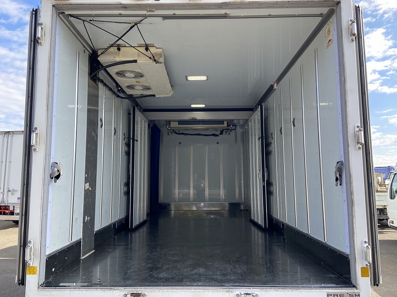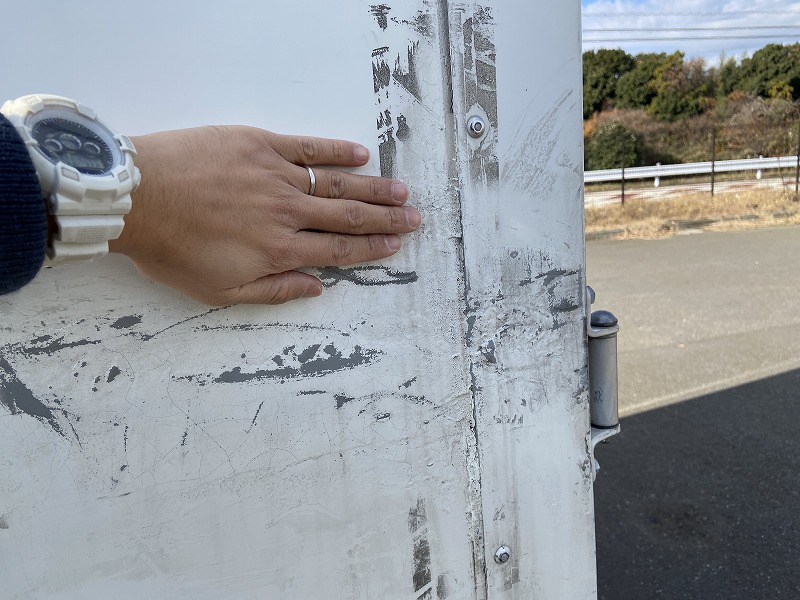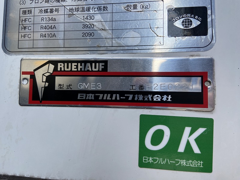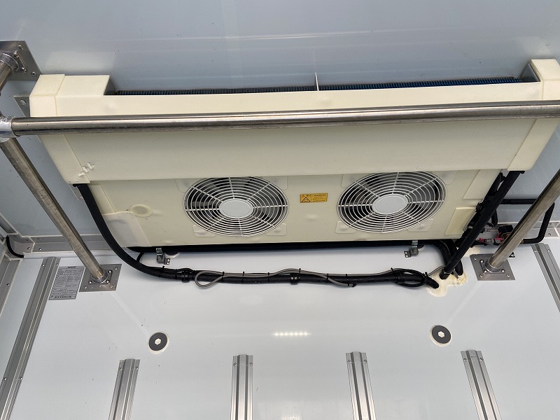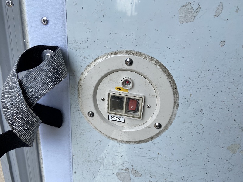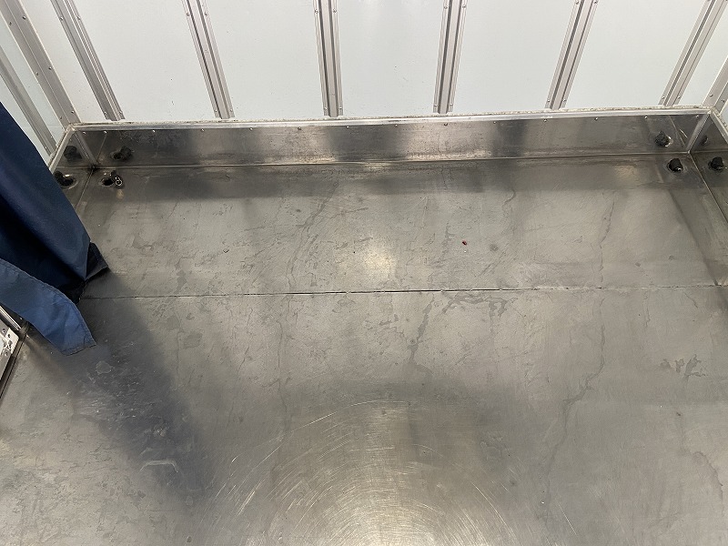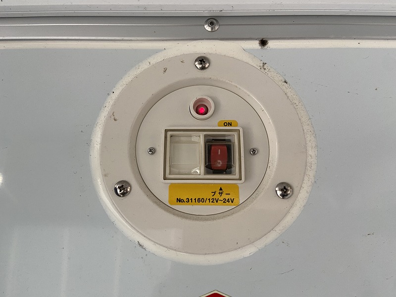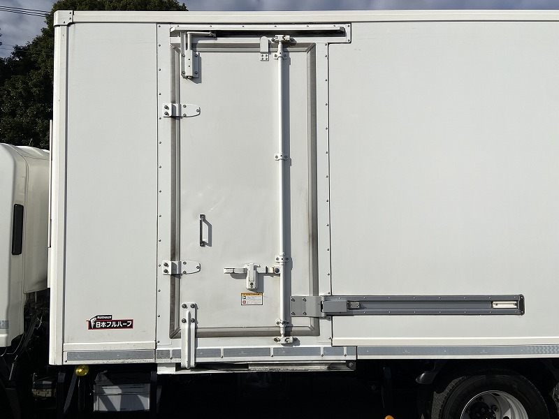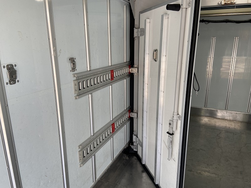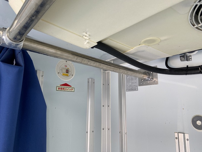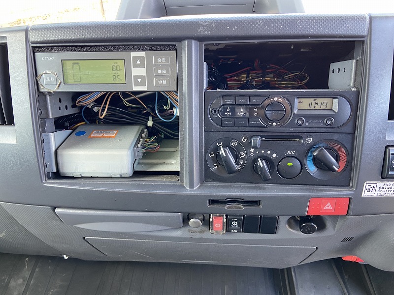 デンソー製CG921W型 中温設定 床ステンレス 移動式扉 水抜き穴前2ヶ所 3枚観音扉 サイドドア(助、スライド式)荷箱外側補修跡有 E/G始動後2時間で前後16℃~前2℃後-2℃まで確認済