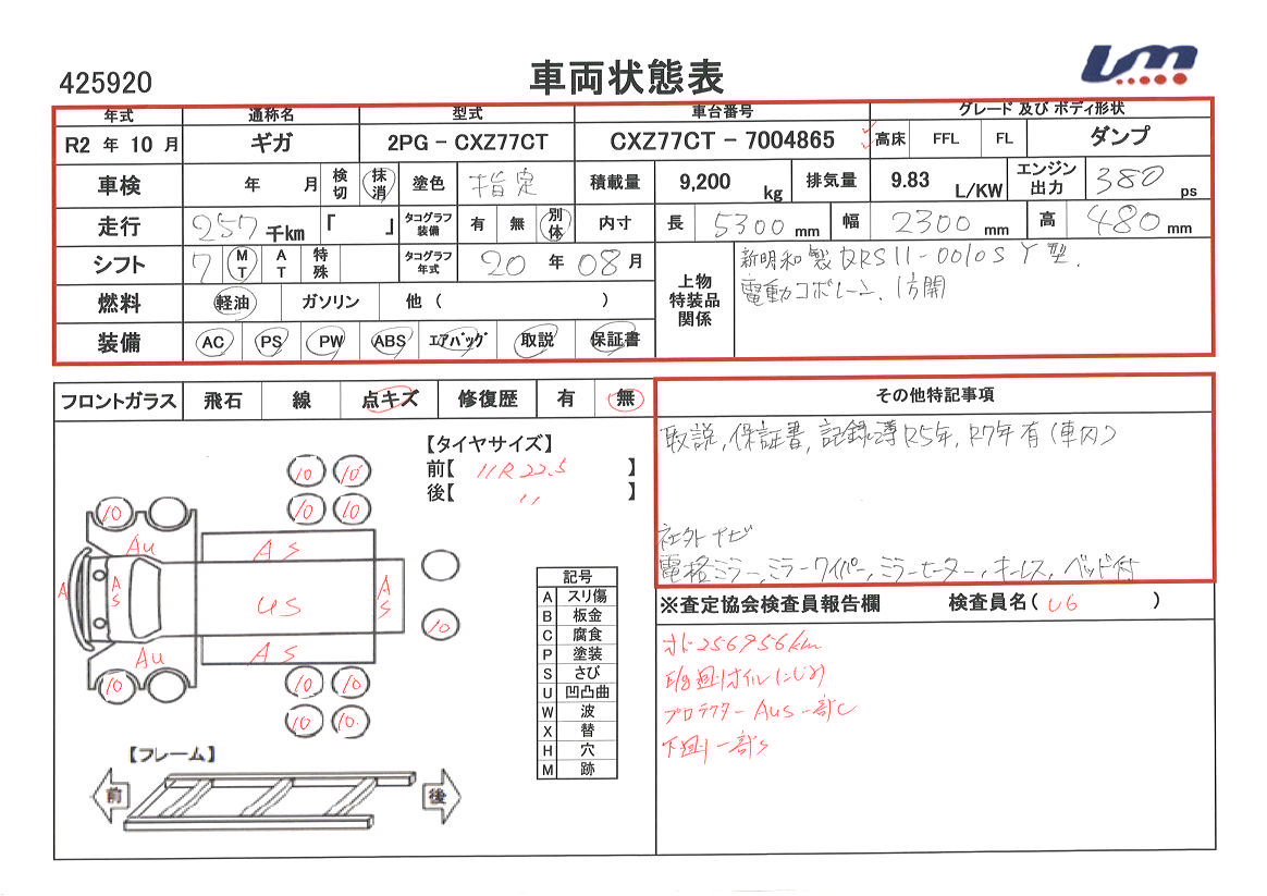 NEW ギガ - R02年式 - ダンプ - 7MT - 257(千km)