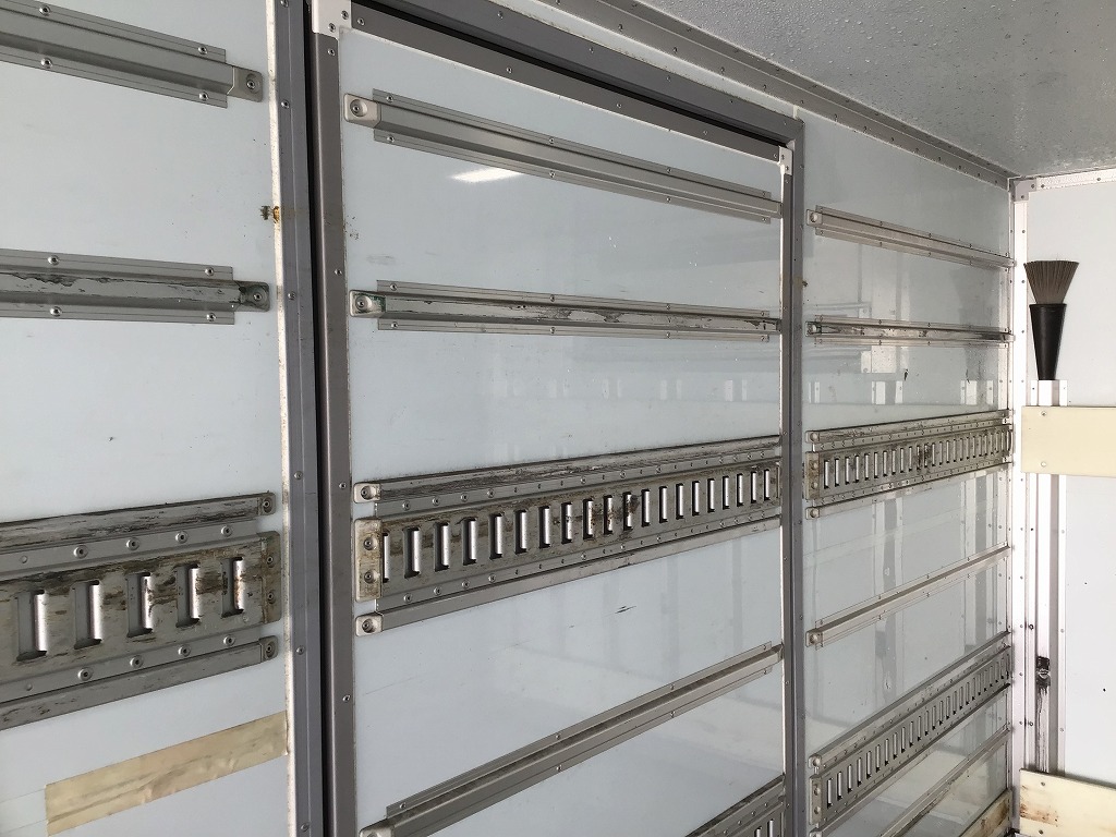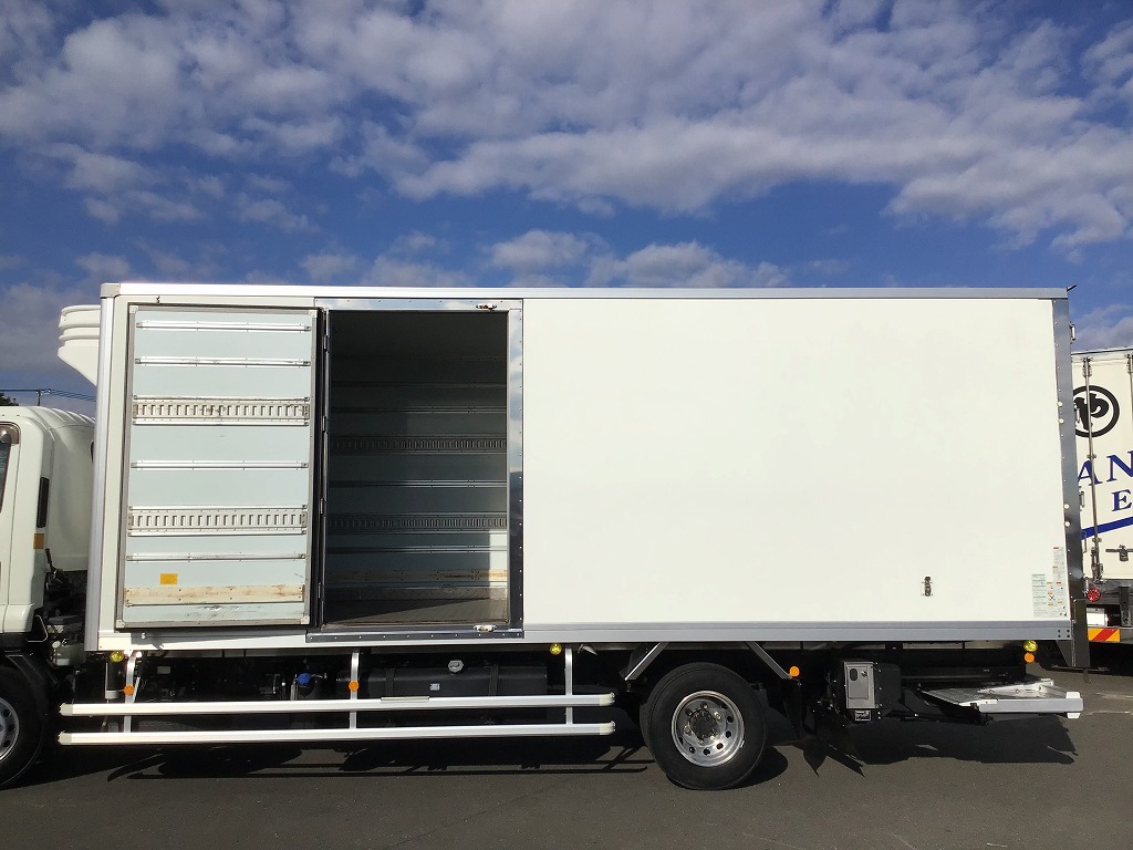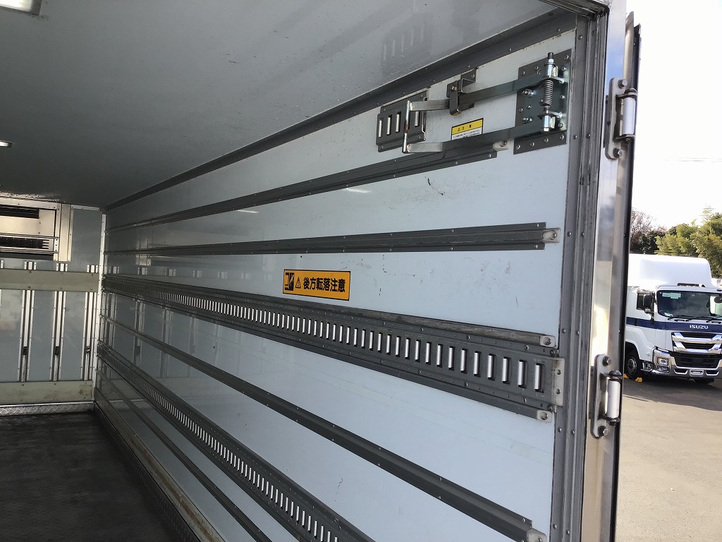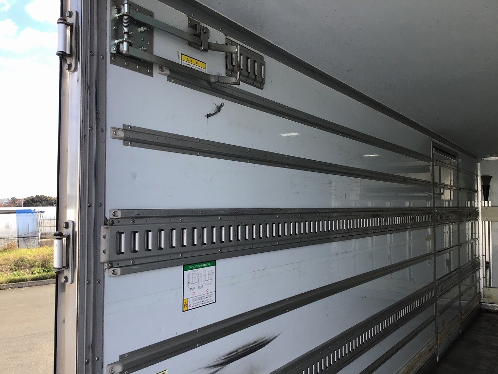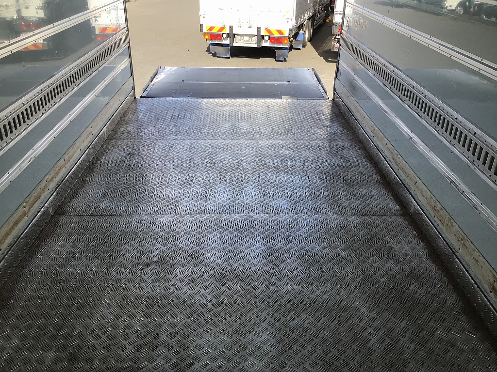 三菱製TDJS40AーL2型 -5℃設定 ラッシング2段 床縞鋼板張 サイドドア(助、観音式) E/G始動後1時間で13℃~-5℃まで確認済み 新明和製RAK10ー6485D型格納ゲート(1000KG)電格ミラー キーレス付 ベッドレス