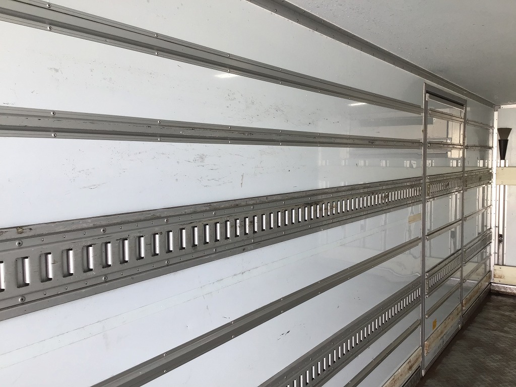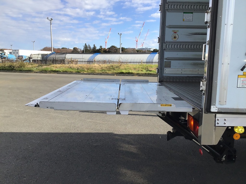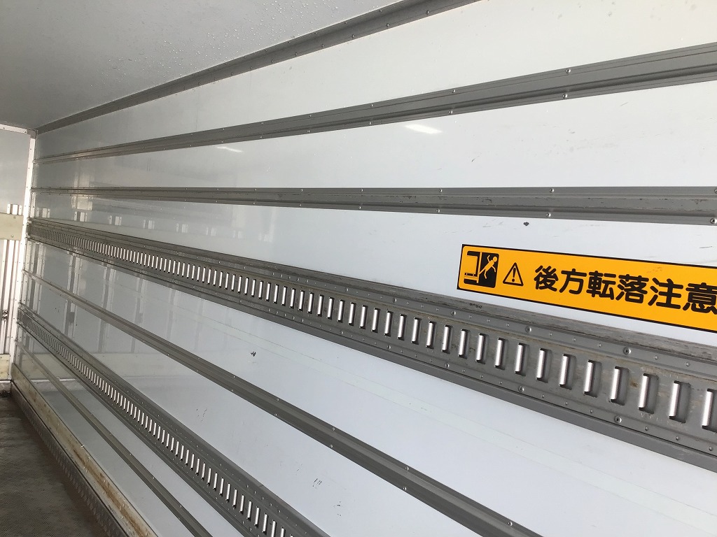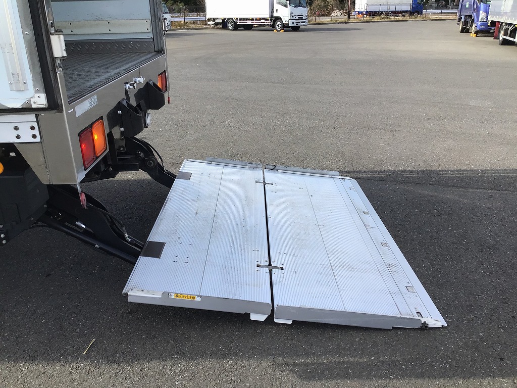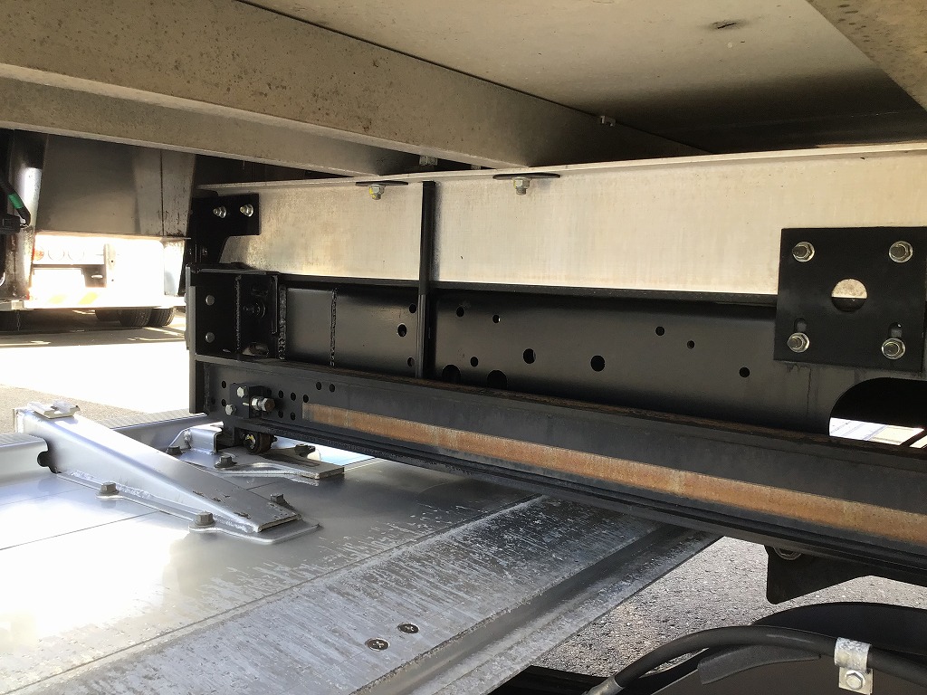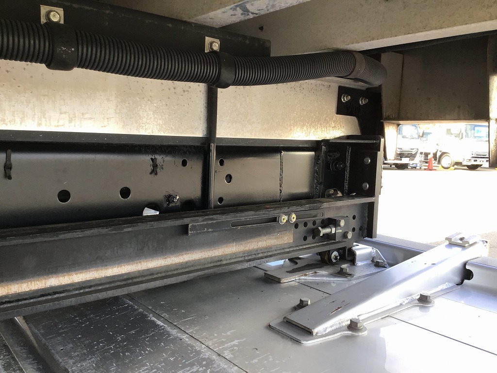 三菱製TDJS40AーL2型 -5℃設定 ラッシング2段 床縞鋼板張 サイドドア(助、観音式) E/G始動後1時間で13℃~-5℃まで確認済み 新明和製RAK10ー6485D型格納ゲート(1000KG)電格ミラー キーレス付 ベッドレス