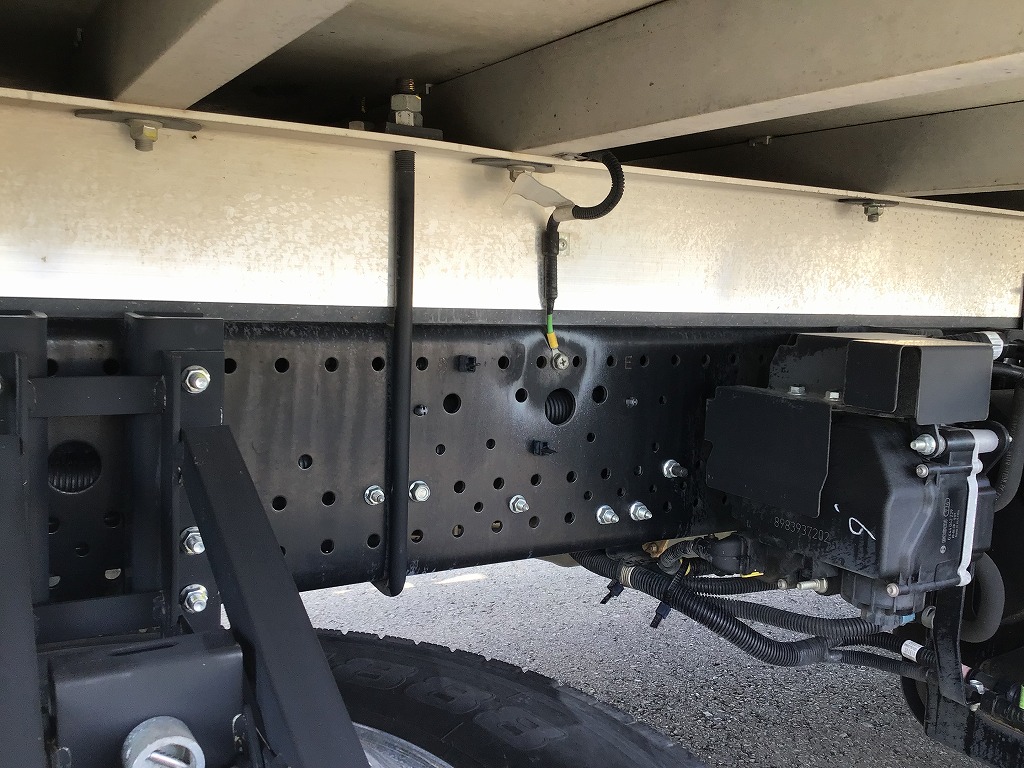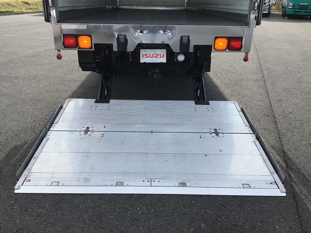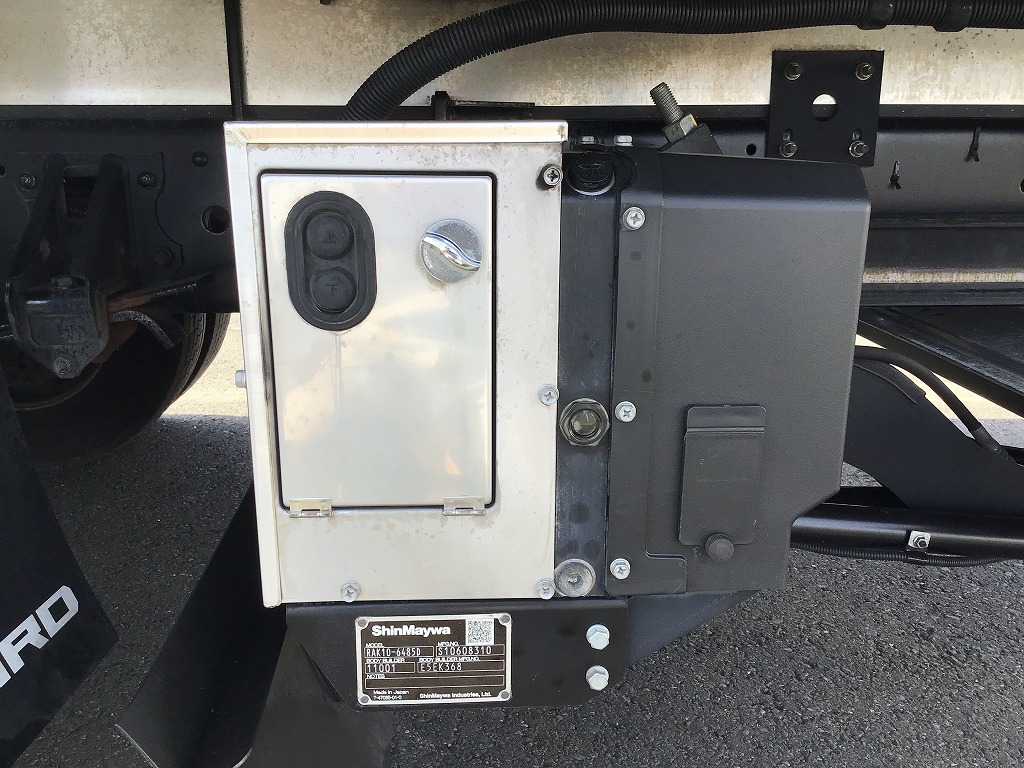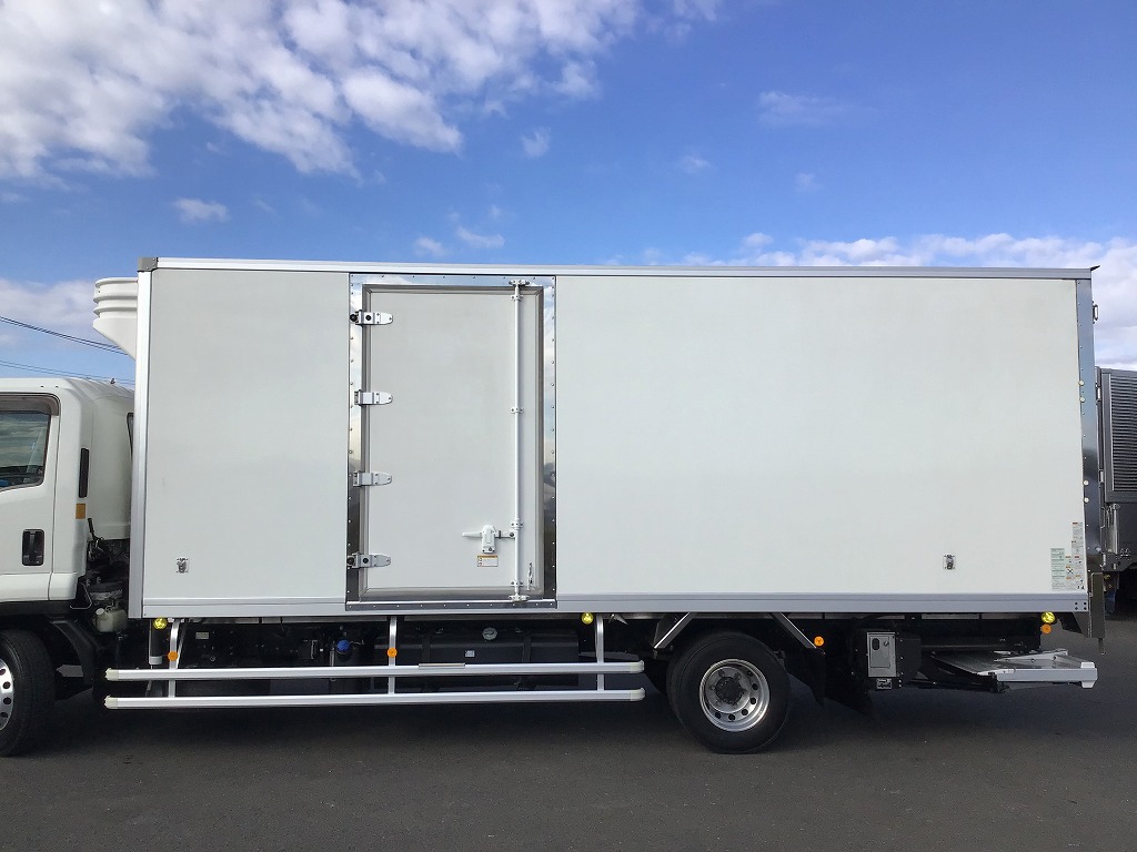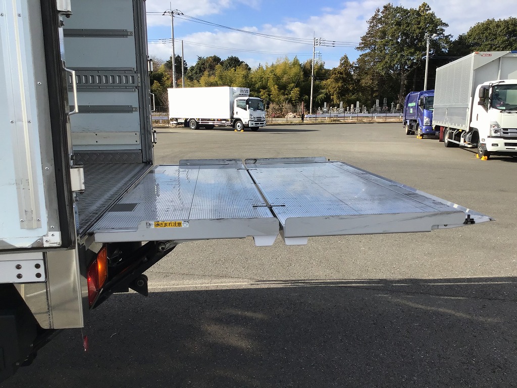 三菱製TDJS40AーL2型 -5℃設定 ラッシング2段 床縞鋼板張 サイドドア(助、観音式) E/G始動後1時間で13℃~-5℃まで確認済み 新明和製RAK10ー6485D型格納ゲート(1000KG)電格ミラー キーレス付 ベッドレス