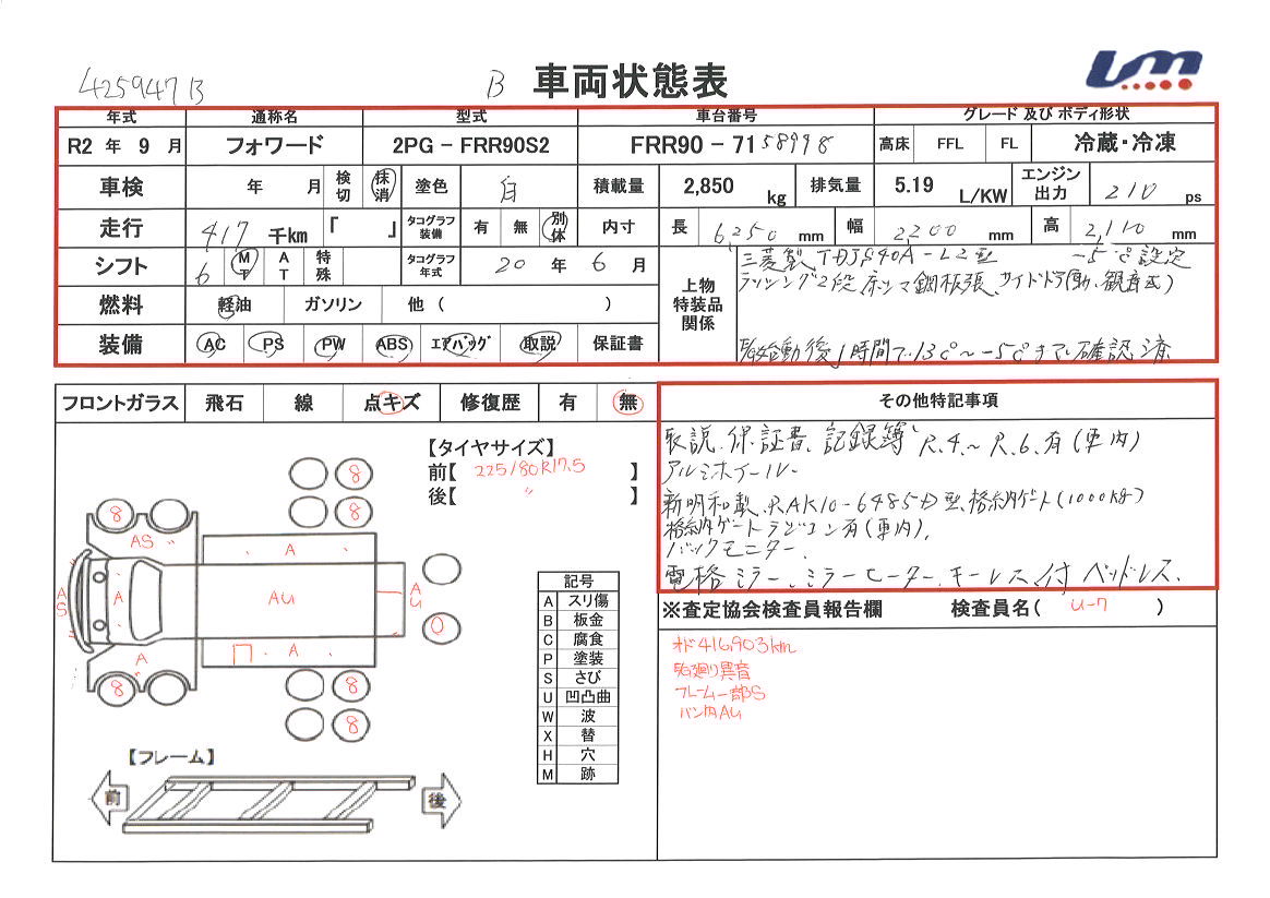 NEW フォワード - R02年式 - 冷蔵冷凍車 - 6MT - 417(千km)
