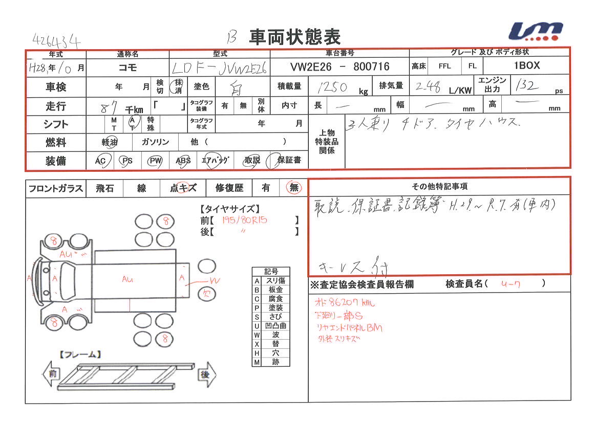 NEW コモ - H28年式 - 1BOX - AT - 87(千km)
